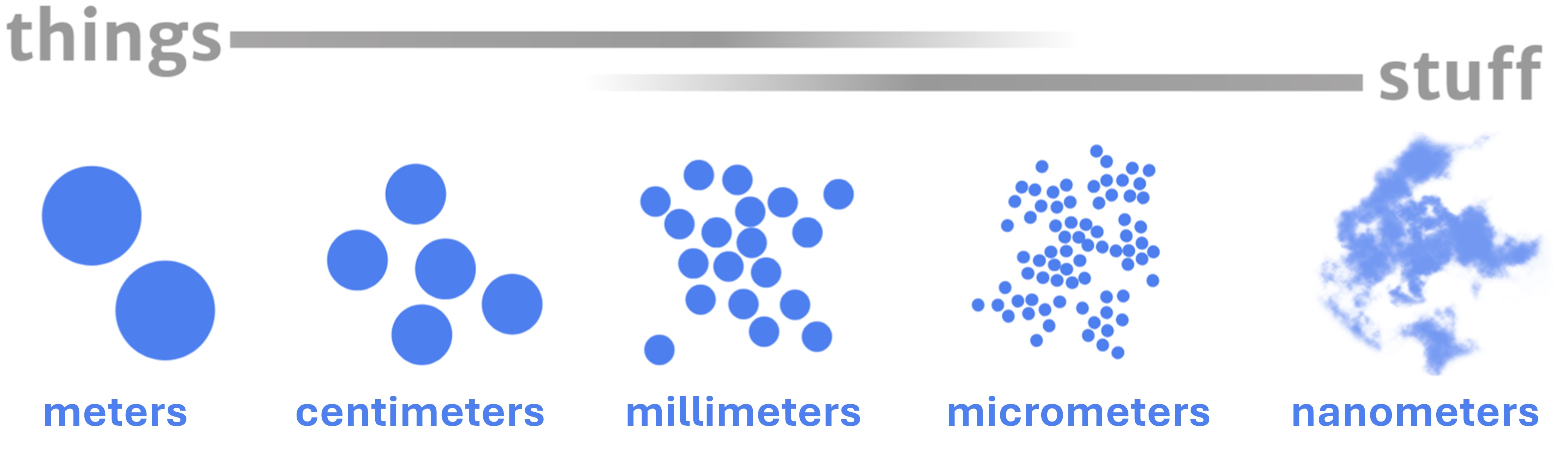 Moving from discrete objects (“things”) to continuous, reconfigurable materials (“stuff”)